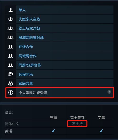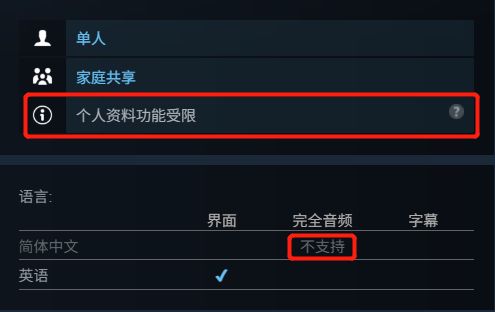 游戏不支持简体中文;无成就;个人资料受限(不计入账号游戏数据统计,并无资格在steam个人资料的某些游戏展柜展示)。缺点挺多,介意的uu们请谨慎领取