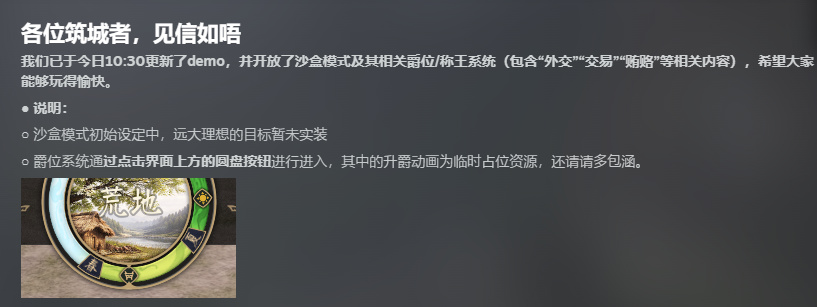这里必须跟兄弟们说一句:之前的首版 Demo 只是开胃菜,现在的沙盒模式才是《烽沙》真正的样子!开发团队憋了好几个月的大招昨天终于放出来了,我昨天第一时间就上去玩了,有点期待后续的远大理想目标了呢。