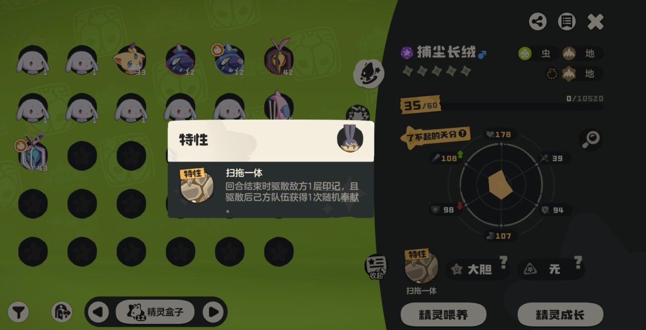 精灵获取及调整:两个是由毛头小蛛根据身高是否超过0.35进化而来,这里小二就直接演示抓成体了,追踪图鉴297号,一般在学院右下角走廊。