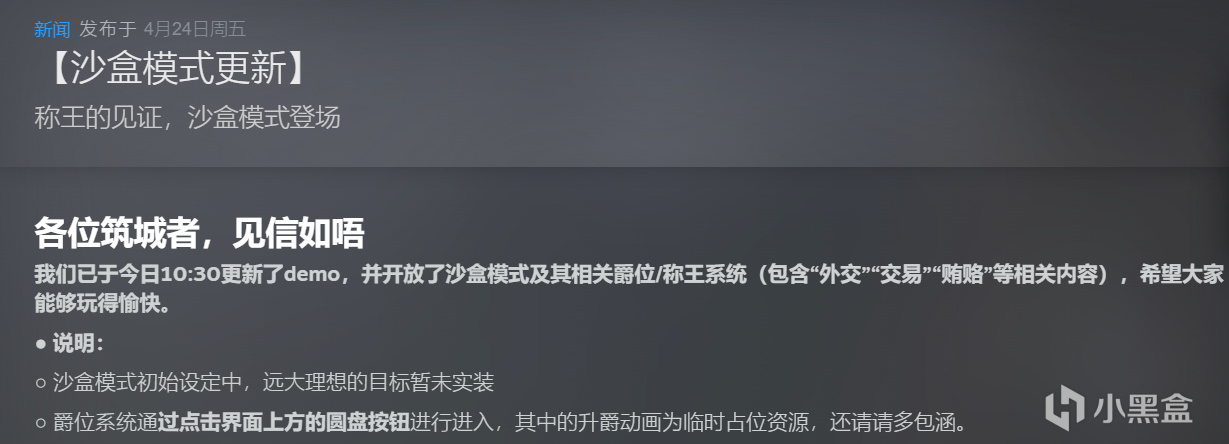并且这次的Demo只是开胃菜,而在最近推出的“沙盒模式”才是游戏的重头戏,也可以说这才是游戏的完全体!