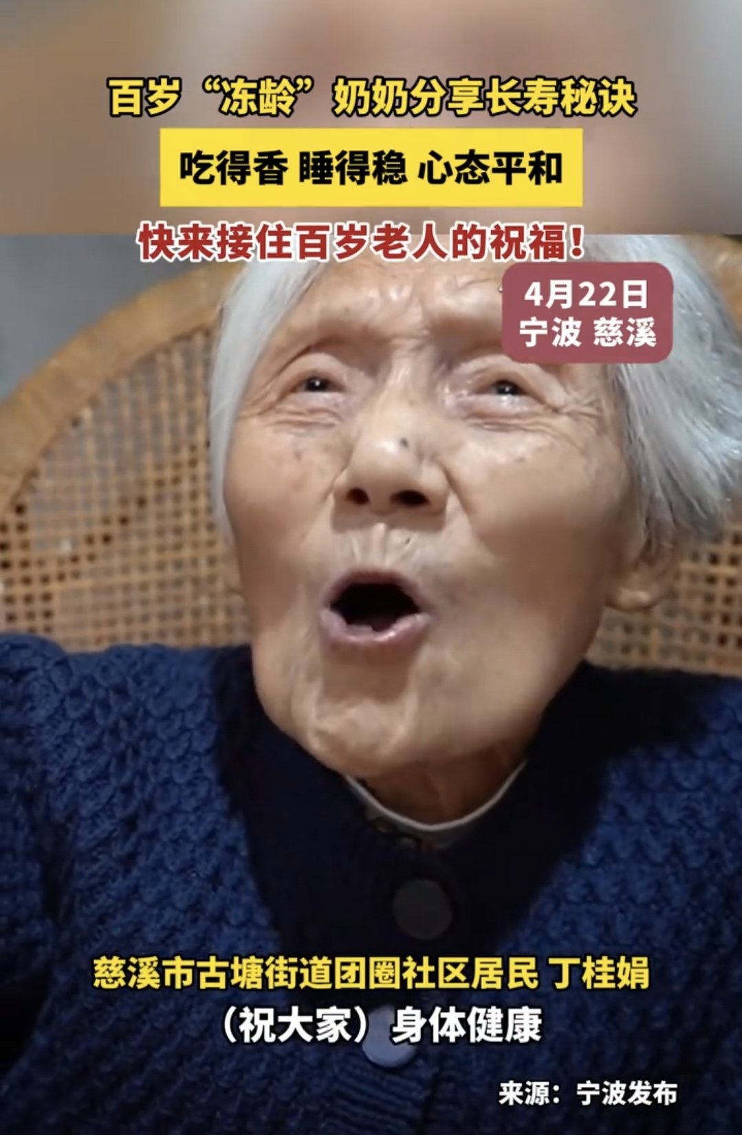 近日,浙江慈溪一位107岁的陈阿婆,生于1919年因“冻龄”状态走红网络。她皮肤无明显皱纹和老年斑,身体指标远超同龄人,引发广泛关注和讨论。多家媒体报道了她的事迹,包括她的日常生活、饮食习惯和心态秘诀。浙江大学医学院附属第一医院老年科专家还专程走访,验证了她的健康数据。
