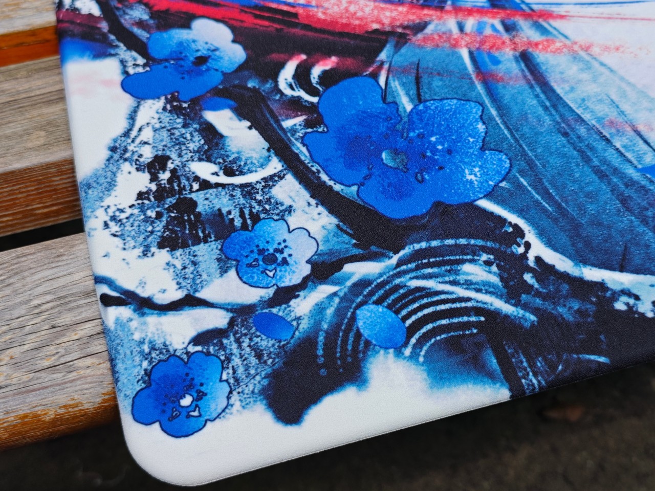 這次新增加了一體式包邊的工藝(熱壓封邊,直接把邊緣熱熔處理,沒有額外縫線),不像之前其他鼠標墊那種會扎線的包邊。