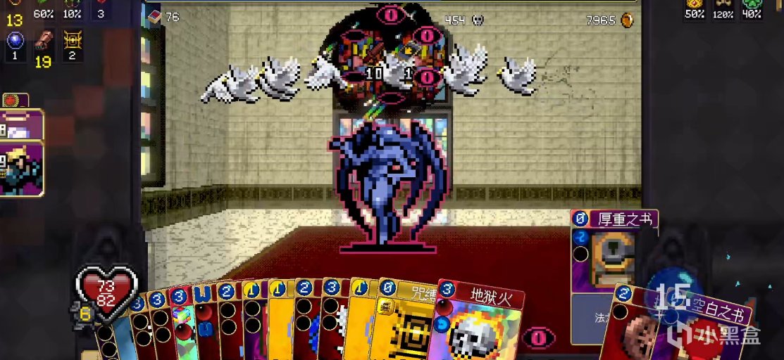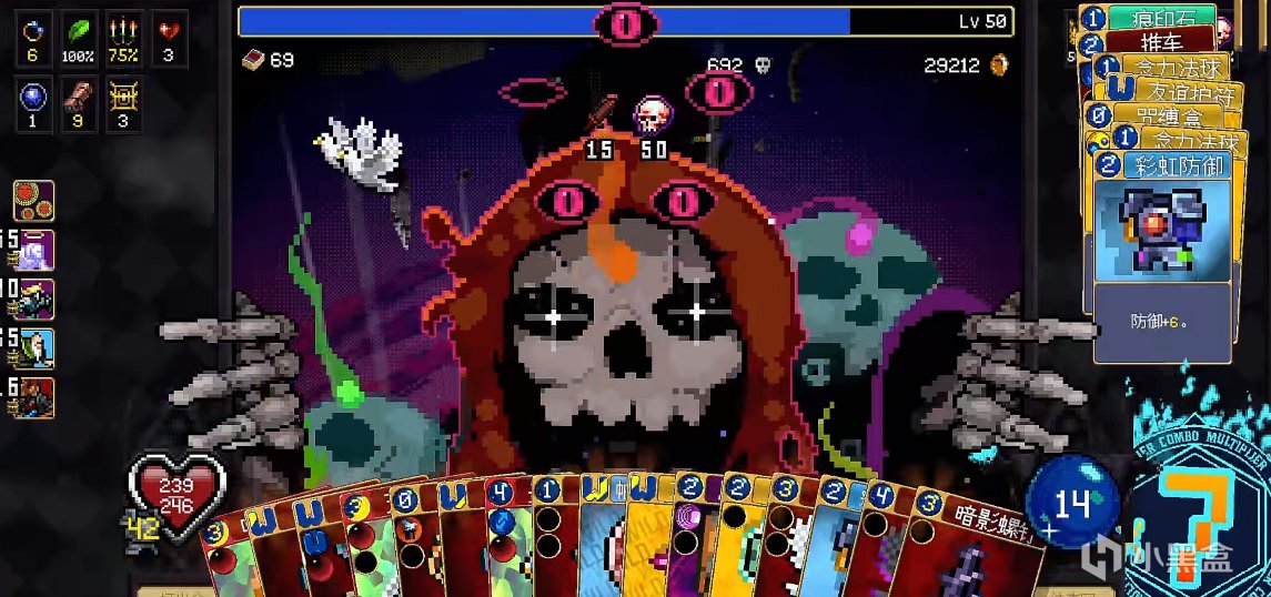 之前的很多卡牌游戏或者回合制地牢游戏,或多或少都想教玩家玩游戏。但在这里你根本不需要考虑什么复杂的流派搭配,因为开发者已经在卡牌图案和图标上用最直观的方式告诉了你:“这牌是用来加Buff的”“这张牌很费钱”“这张牌是用来打终结技能的”。甚至很多牌你都不需要具体了解它是干嘛的,打就完了。比如游戏中的幸运我通关了也没搞清楚,它到底是提供什么?