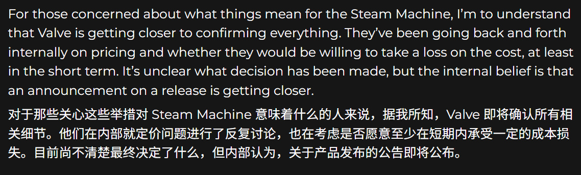 在一篇新文章中,斯特劳解释道,公司内部“一直在就定价问题反复讨论,纠结于是否愿意承担成本损失,至少是在短期内。”这让部分关注者感到意外,因为Valve此前曾表示该系统不会像传统主机那样获得补贴。相反,它将为购买者提供与拥有相似规格的游戏PC同等的价值,但需支付相应的费用。