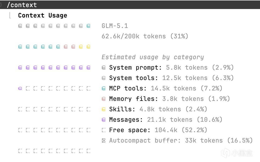CLAUDE.md。这块我们可以控制,Galarza 的项目配置大约 4K token,占 2%。但这取决于你往里面塞了多少东西。有些人把架构文档、编码规范、工作流模板全堆进 CLAUDE.md,它能膨胀到 10K 以上。