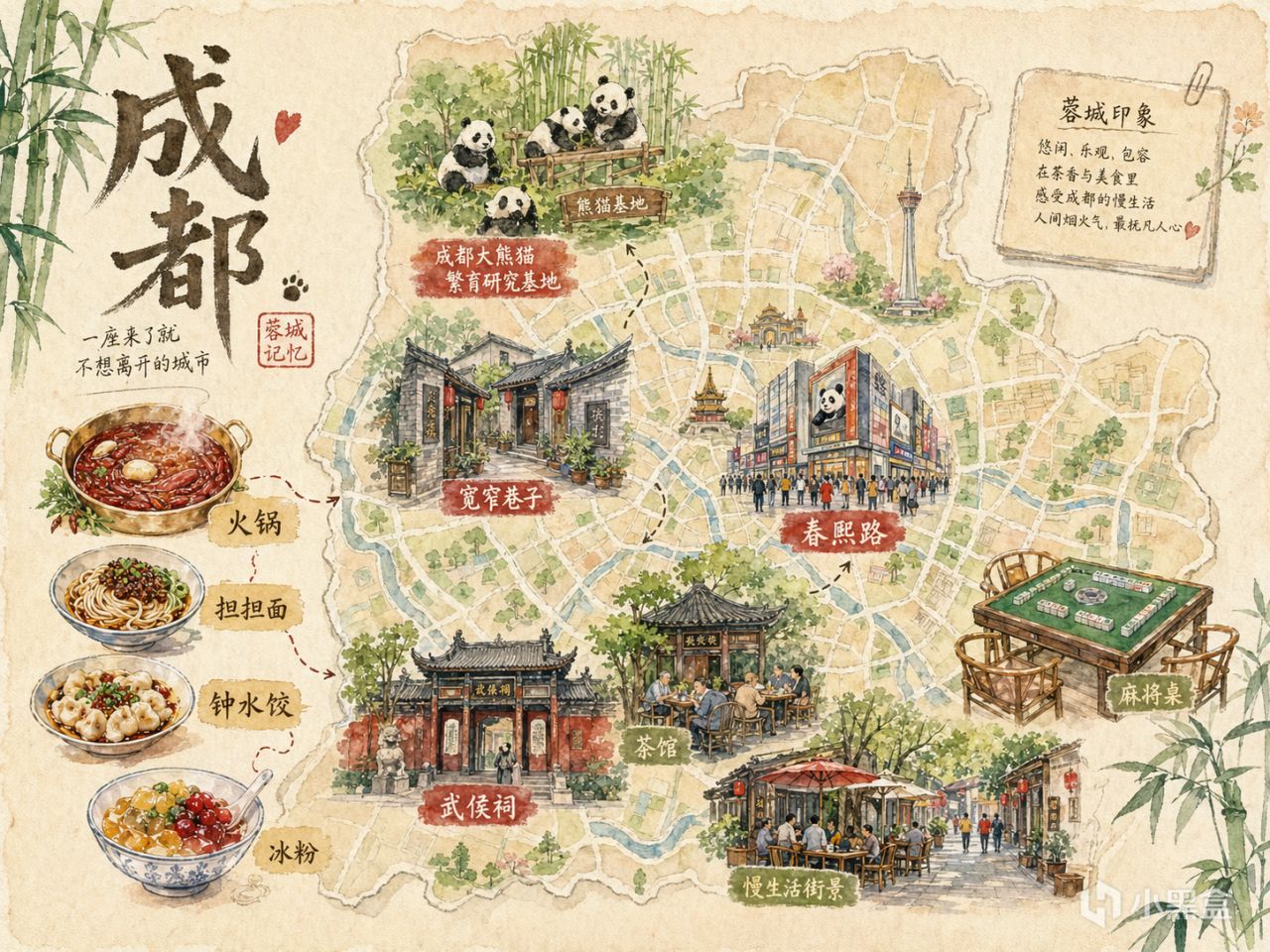 2. 地图不需要严格真实,但要有清晰的城市轮廓和旅行手账感;