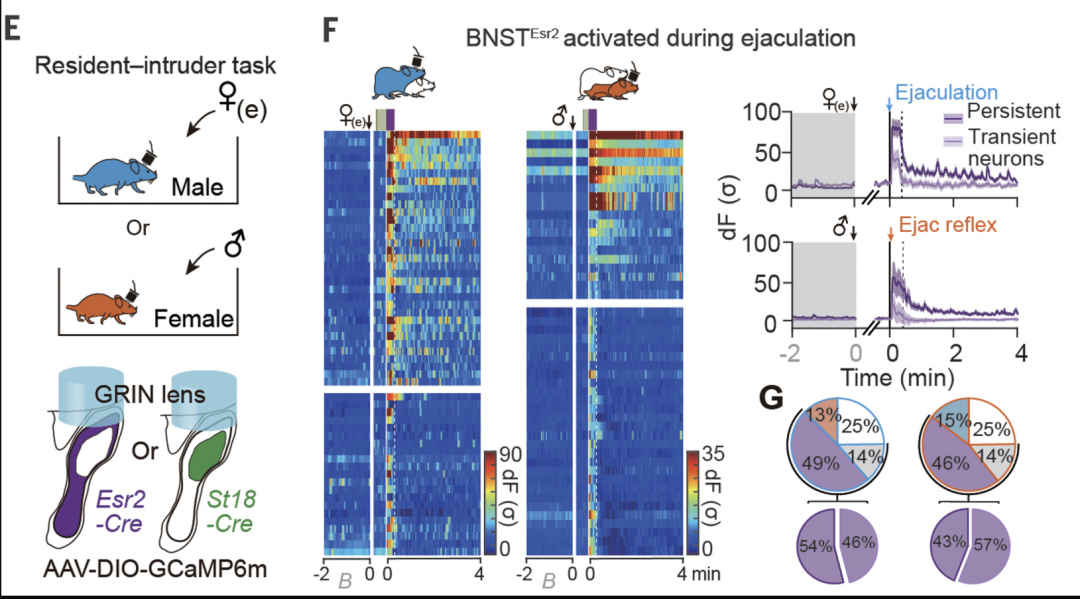 不同BNSTEsr2Esr2神经元的激活持续时间不一,部分可持续至飞升后30分钟,从而编码持续的⭐饱足状态。该现象在雄性中更为显著,解释了为何“贤者模式”在男性中更常见。