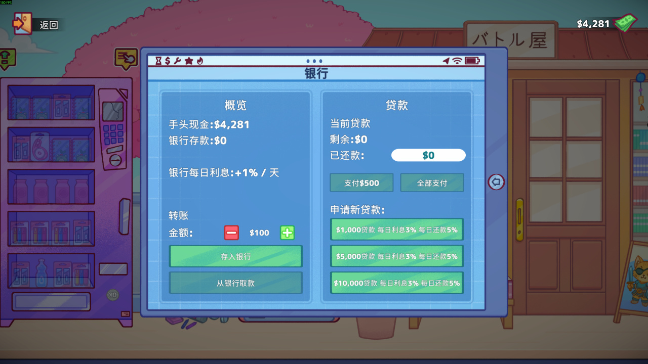 《自动售货机模拟器》这款游戏并不是有着严苛斩杀线的严肃经营游戏,甚至于玩家完全破产的情况下,银行贷款也会给予东山再起的机会。因此,玩家不必过分追究赚钱的快慢,更无需在本该享受游戏缓慢节奏的前期,选择跳过白天,极速地扩张销售、压榨利润、大铺售货机。慢慢的感受,细细读懂每个区域人们的所求所想,或许更符合这款游戏悠然自得的初衷。