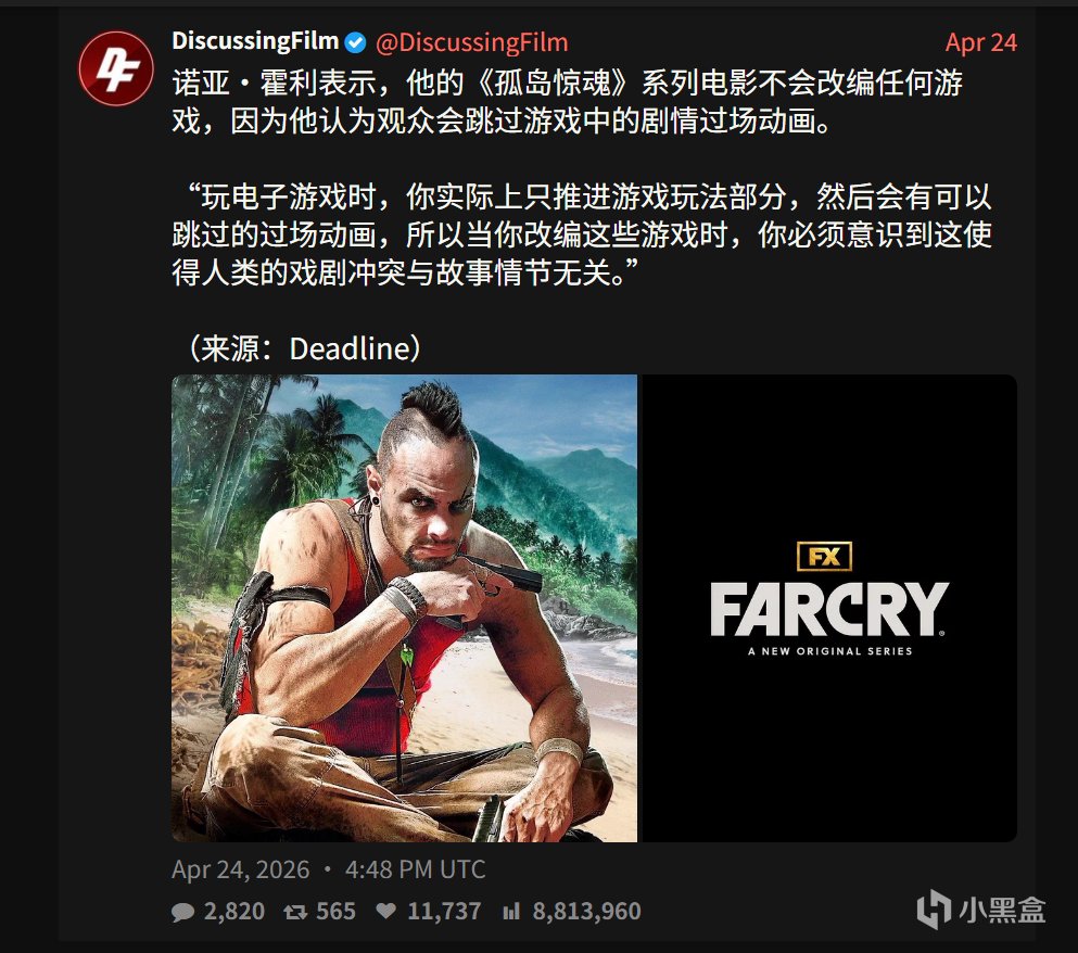 諾亞·霍利明確表示他的《孤島驚魂》系列將完全原創,不取材於任何一部遊戲。他給出的邏輯是:既然玩家可以選擇跳過劇情,說明那些“人類 drama”對於遊戲體驗並非核心,因此改編時也沒必要照搬。