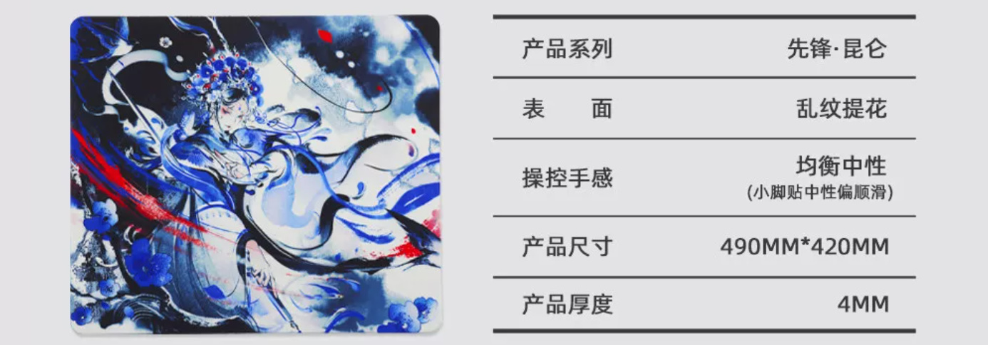 为啥这么说?在前一段时间,我收到了虎符电竞家的先锋·昆仑,一张XY轴滑度一致的中性乱纹垫。