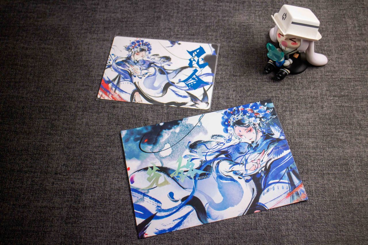 先说说包装,塑封+平铺+内层纸垫保护,还额外附赠了两张布面同图案的明信片(卡纸),包装规格直接奔着200元以上的档次去了。
