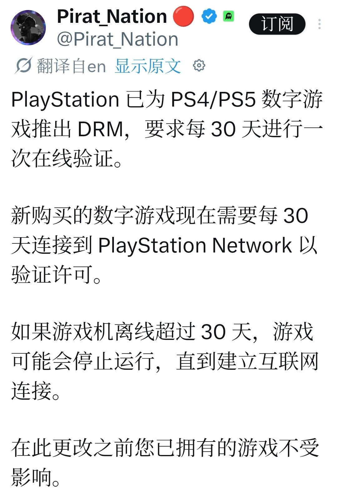一位玩家在網上發帖。他聲稱Sony在最近的固件更新後,對新購買的PS4和PS5數字版遊戲引入了更嚴格的許可證驗證機制。