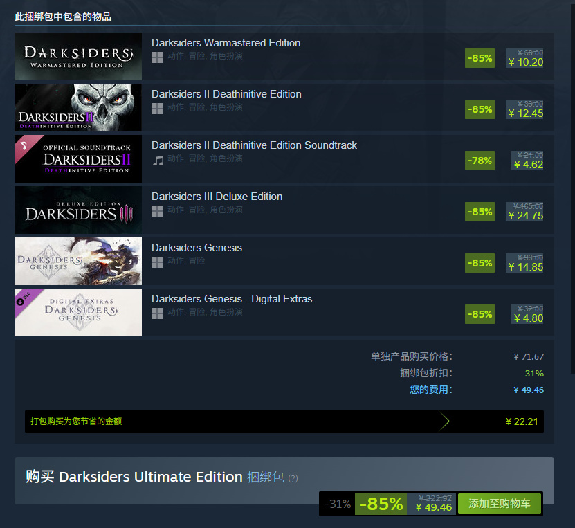 《暗黑血统》终极捆绑包 1.5 折新史低价,售价¥49.46。