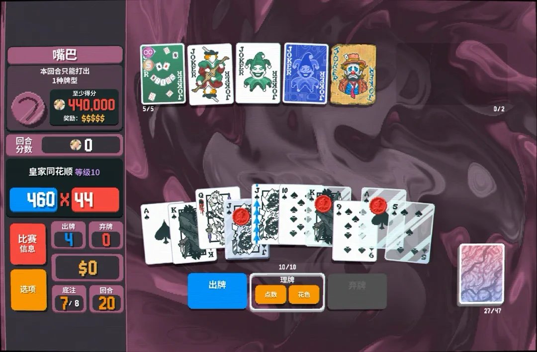 接下来我会讲解下同花顺流派的打法,真正体验小丑牌的独特乐趣。