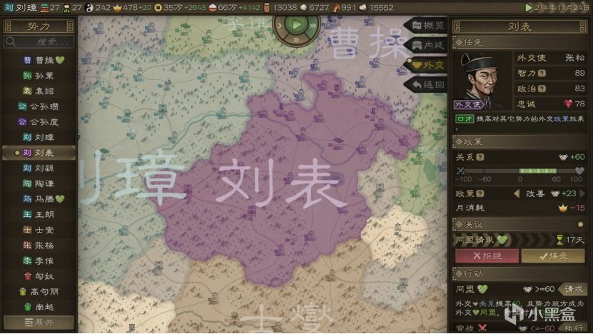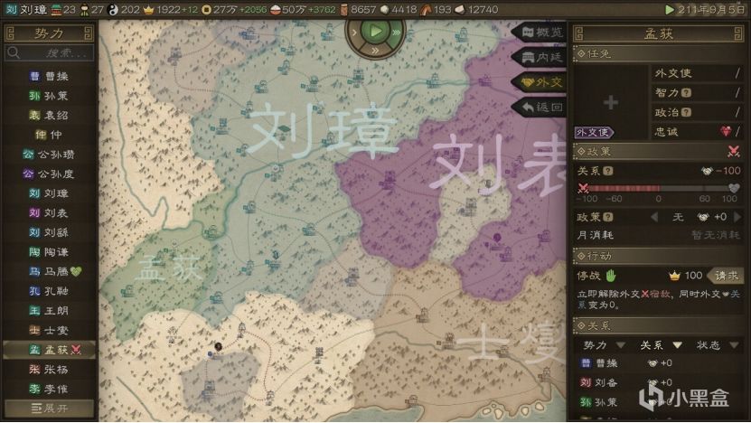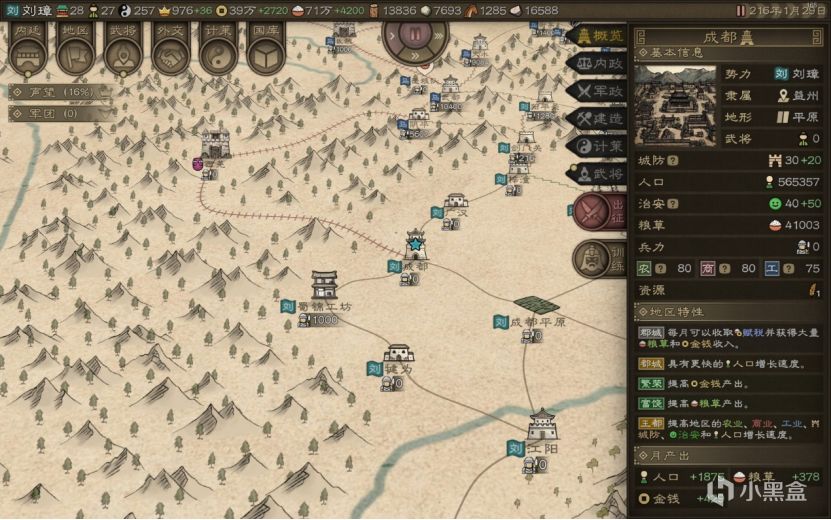 而刘璋已经掌握的城池里,有产盐地提供钱,成都平原产粮,工坊产资源,啥都不缺。开局和马腾打好关系,就直接对张鲁下手。孟获这小子开局直接宣战但是不动手,先不理他。