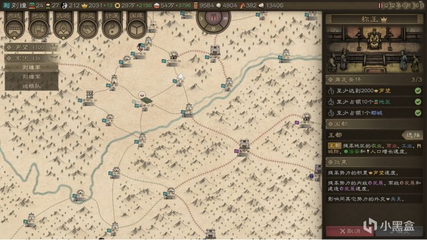 除此之外,整个势力还可以设置丞相、大将军、司空掌管势力的三大部分、同时发布政令以提升某方面能力。