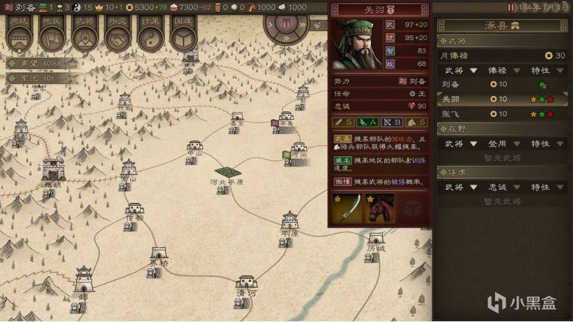 游戏的战斗部分相对容易理解,虽说存在不同武将对不同部队的战力影响,但是大抵上满足人头互换的逻辑,只要人够多就能打下城池。但是部分地区,尤其是蛮夷部族与平原地区的城池之间联通为“险路”,从路上经过需要耗费大量人力和粮食,非常麻烦。