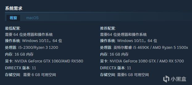 游戏的配置要求如下。