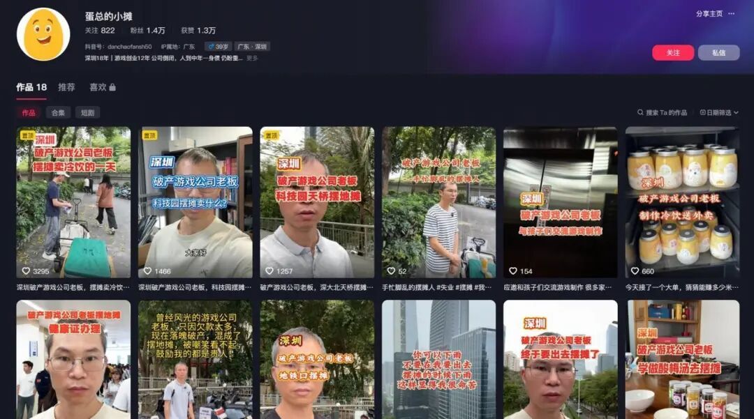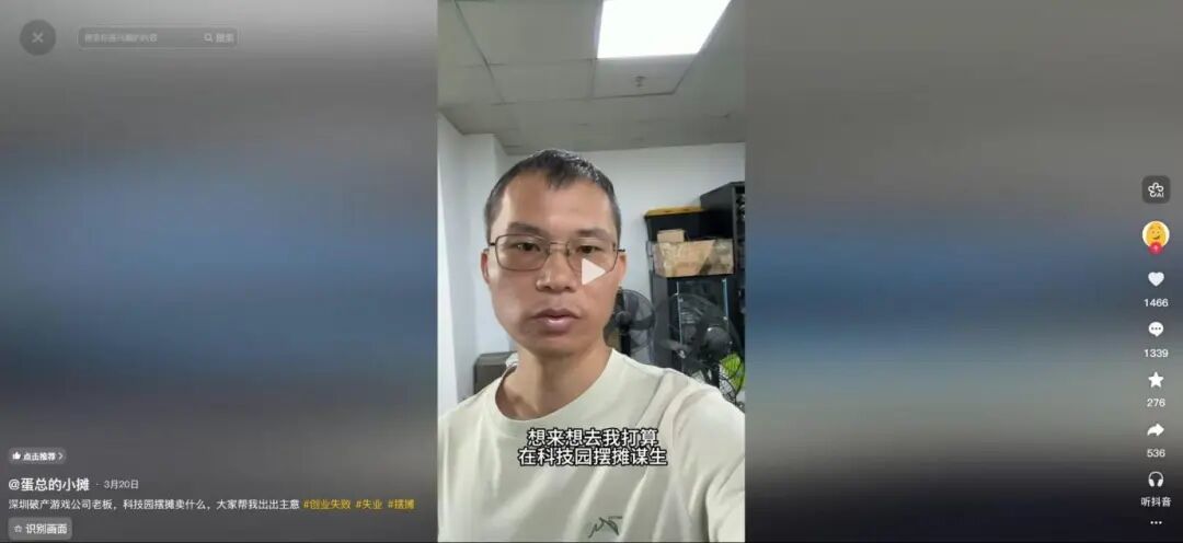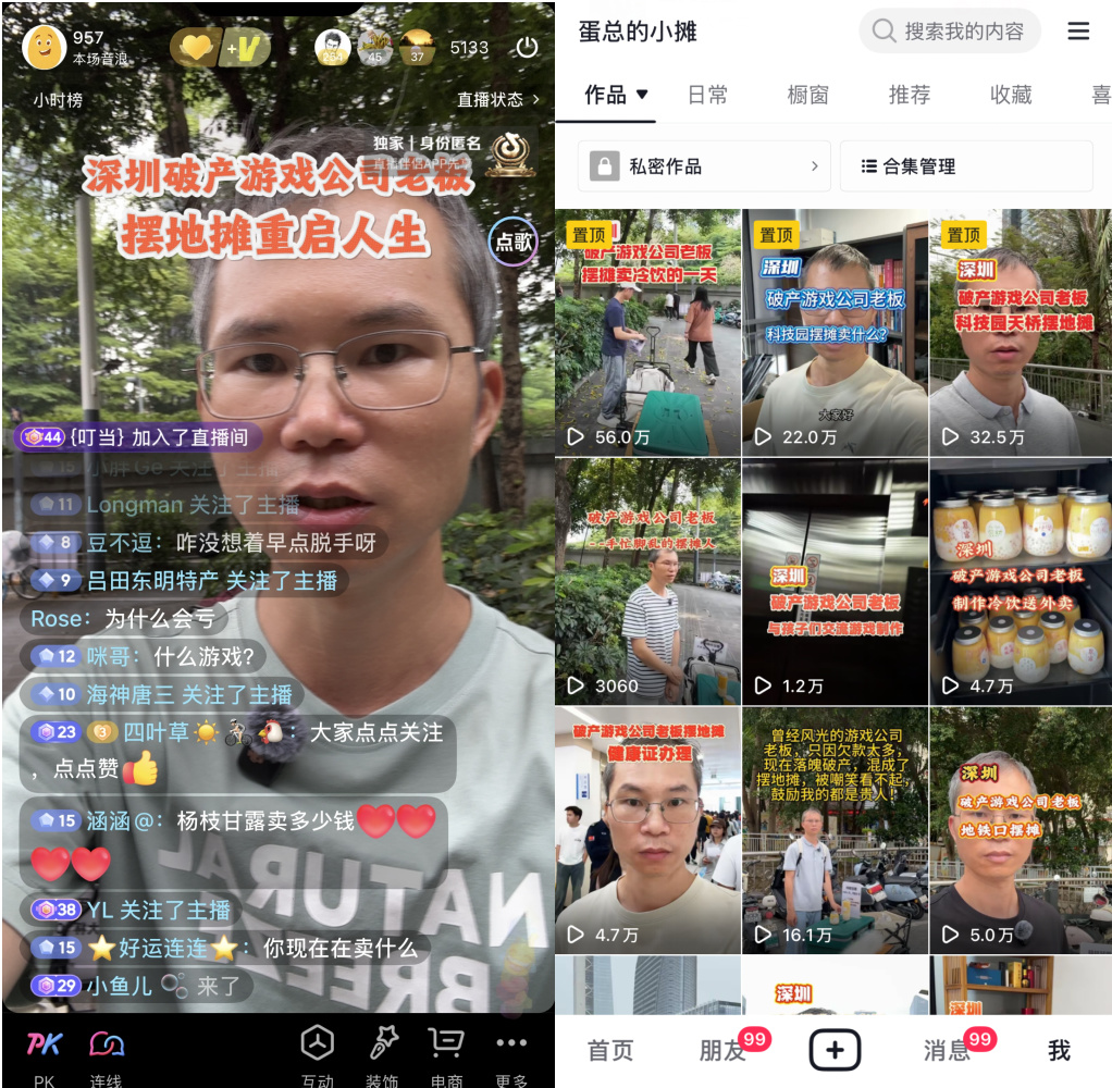 这也是他最近开始在深圳街头摆摊、直播的原因。在他看来,自己并没有完全离开原来的能力体系——本质上还是在研究流量、内容和变现,只是从做游戏产品,变成了做个人内容。