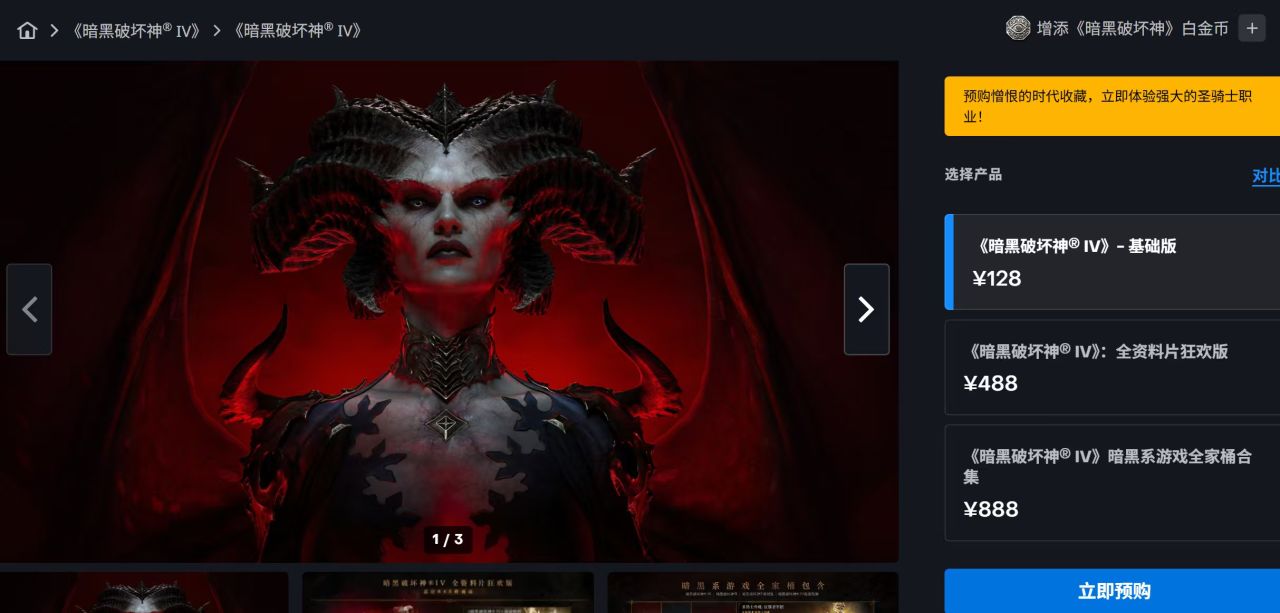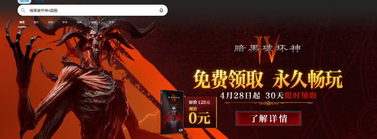 2026.4.28,原价128元,现价0元的《暗黑破坏神4》免费领取,持续30天!
