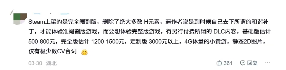 作者明確說明,本作DLC不會上架Steam商店,僅能通過贊助渠道解鎖完整版,且贊助定價爲80美元。