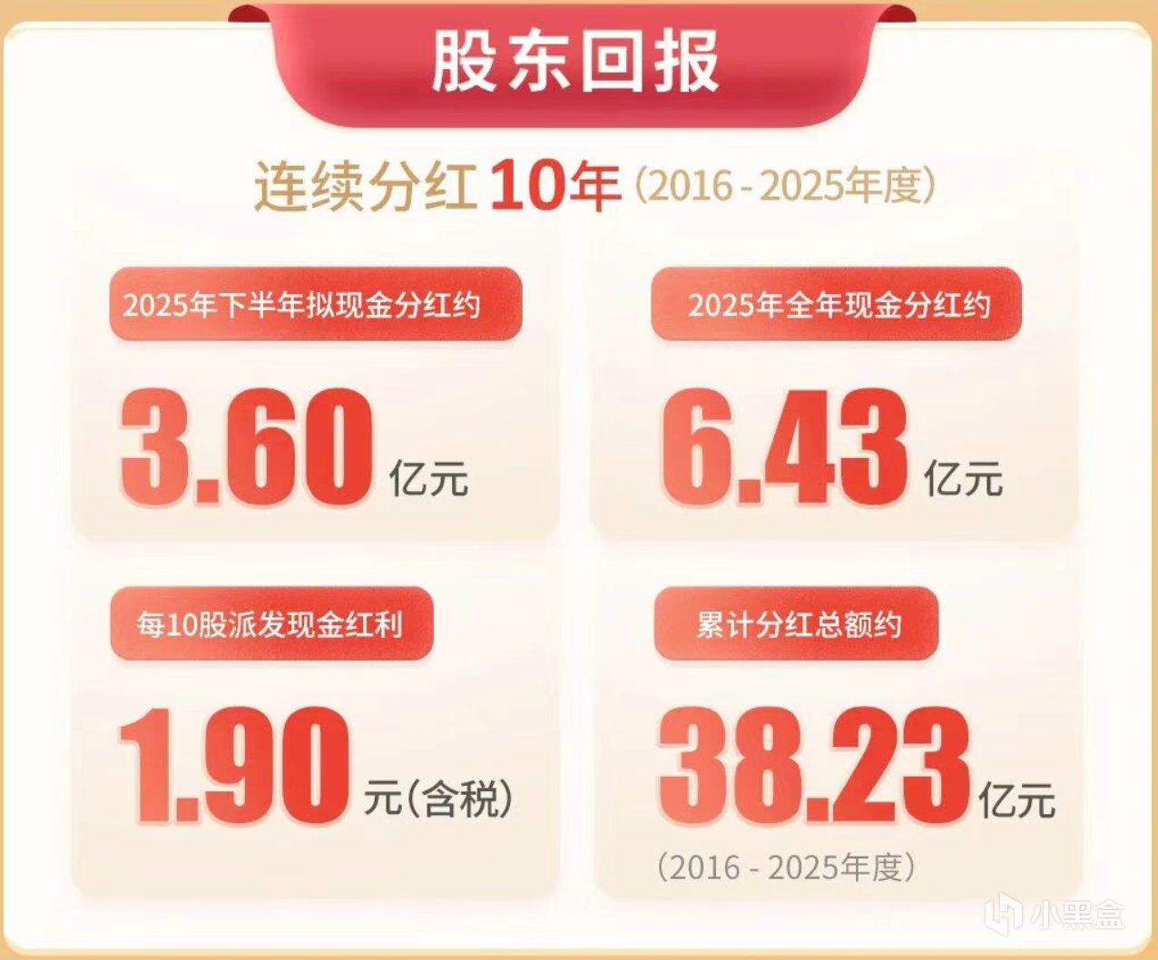 在分红方面,巨人网络2025年全年现金分红6.43亿元。自2016年以来,巨人网络已连续10年实施分红,累计分红总额约38.23亿元。