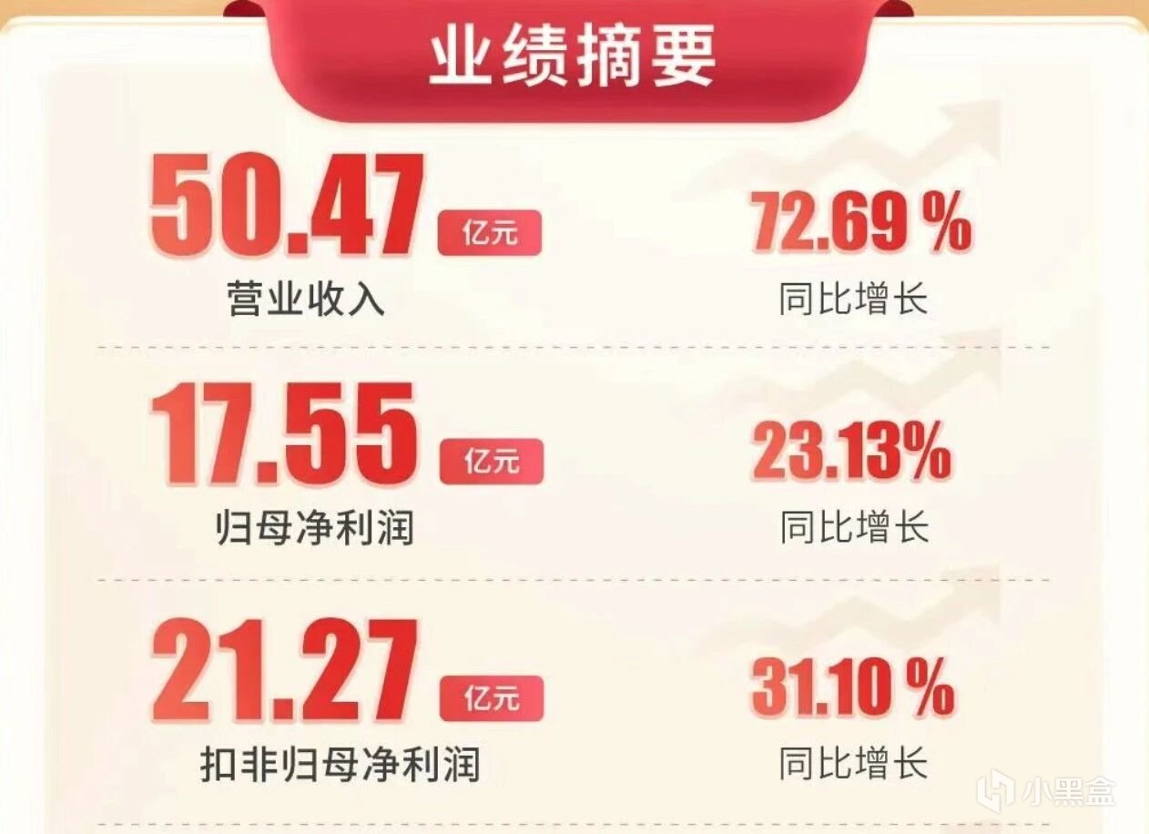 报告显示,全年实现营业收入50.47亿元,同比增长72.69%;归母净利润17.55亿元,同比增长23.13%;扣非归母净利润21.27亿元,同比增长31.10%。