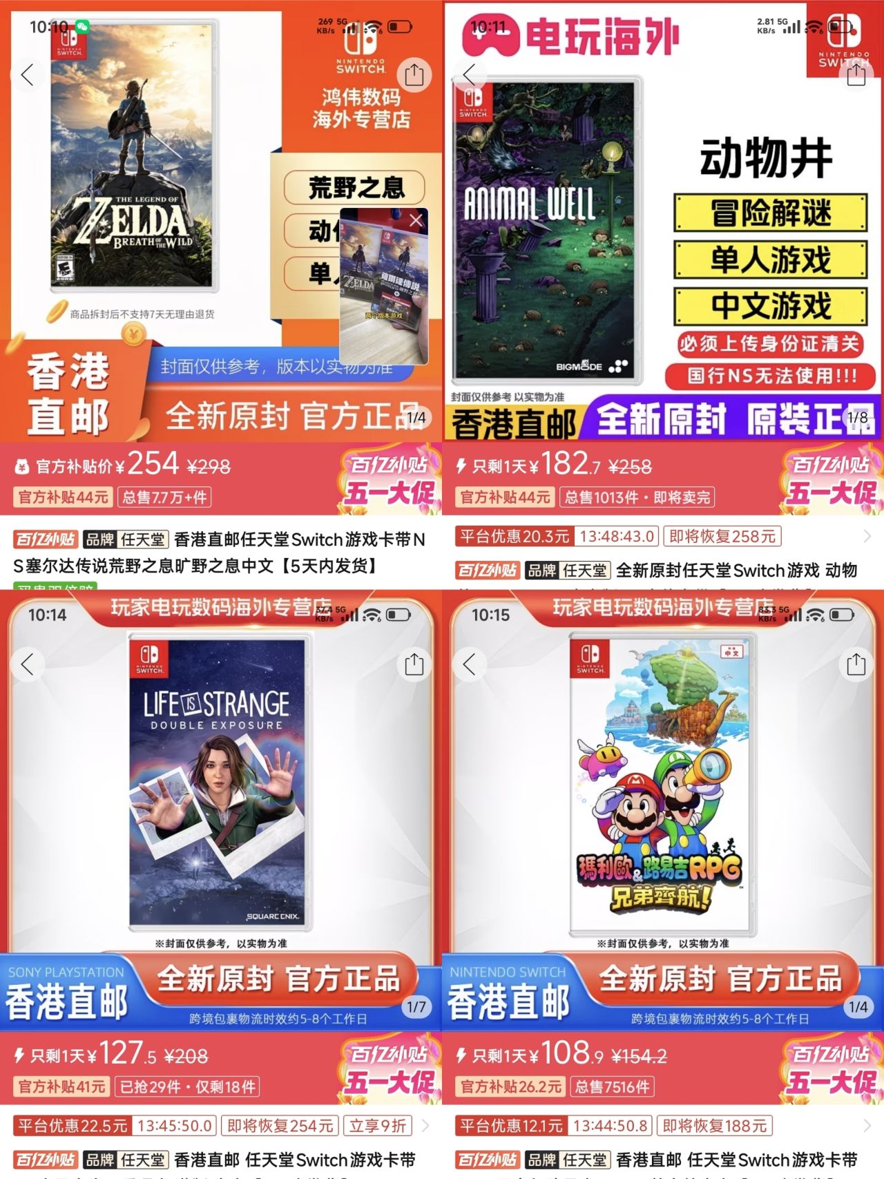 1.《塞尔达旷野之息》ns1版🇺🇸224
