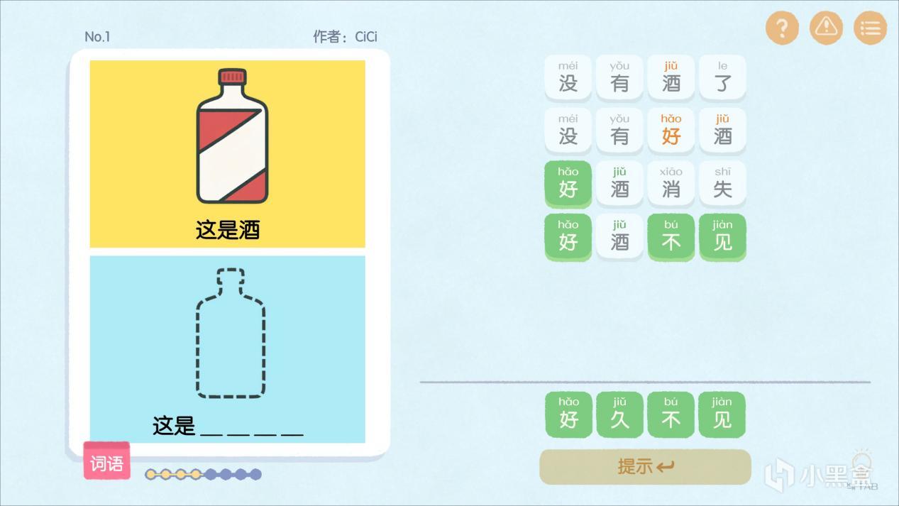 不用看廣告哦,右下角有個提示,答案是慢慢地出現的,先是第一個拼音,在顯示第一個字,再第二個拼音,完全不用擔心被劇透了。也沒必要擔心考關的問題。