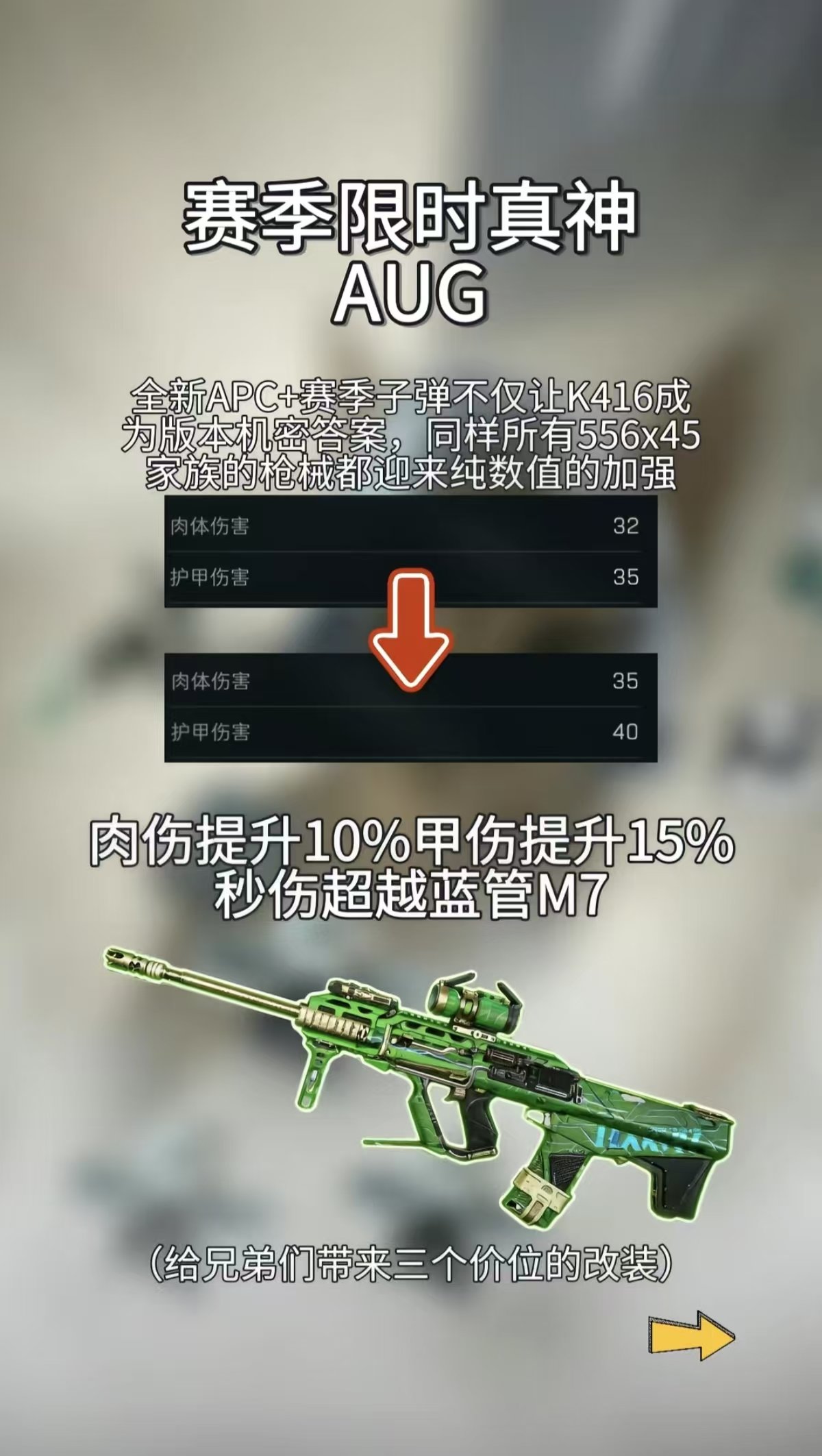 这波赛季子弹的加强,对AUG来说堪称“量身定制”的buff: