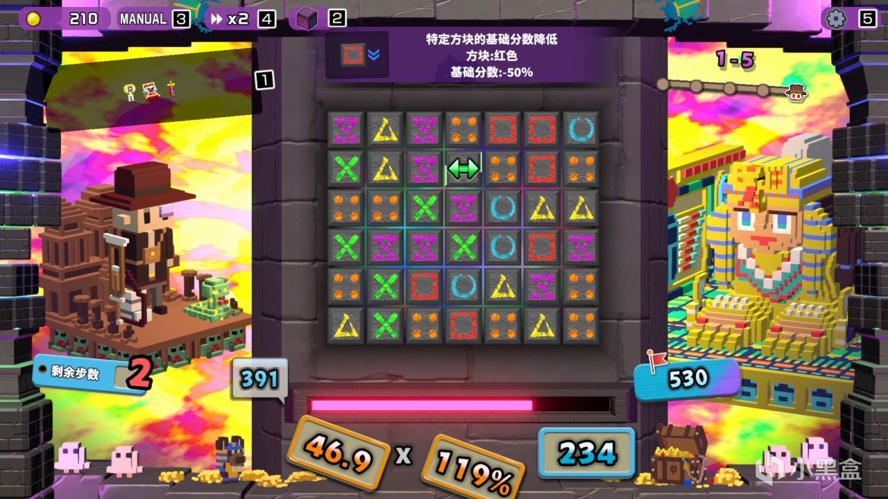 但最近我在小黑盒社区看到了一款新史低13.8的三消游戏,这款《夺宝砖家》直接打破了我的刻板印象,这款融合了魔方滑动、肉鸽构筑、策略解谜、多人竞技的三消新作