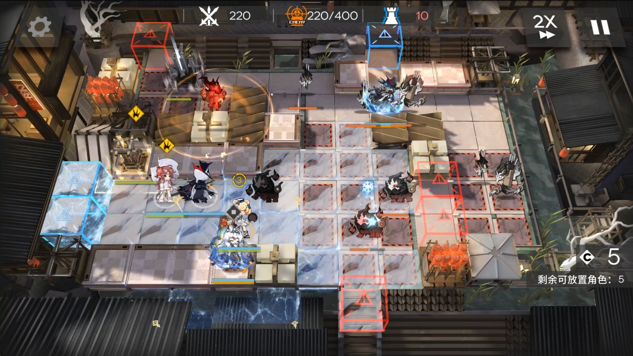 開局先鋒朝右,放歌蒂朝上,古米,初雪,餅乾朝右。只需要你餅乾和初雪有一個就行,歌蒂送的,4星很好拿。餅乾換其他人注意右邊要抗傷,招財扔金幣3200物理傷害,以及可換其他輸出,這裏最後藍門凍住被打了一下,小羊那邊輸出差了一圖中範圍200法傷+80灼燃損傷的怪。最後古米奶不住掛了,歌蒂那邊缺阻擋,桃金娘阻擋後被打死了。敵人1000真傷的龍從餅乾那邊繞路往古米那邊走,會打到初雪和歌蒂那一排。