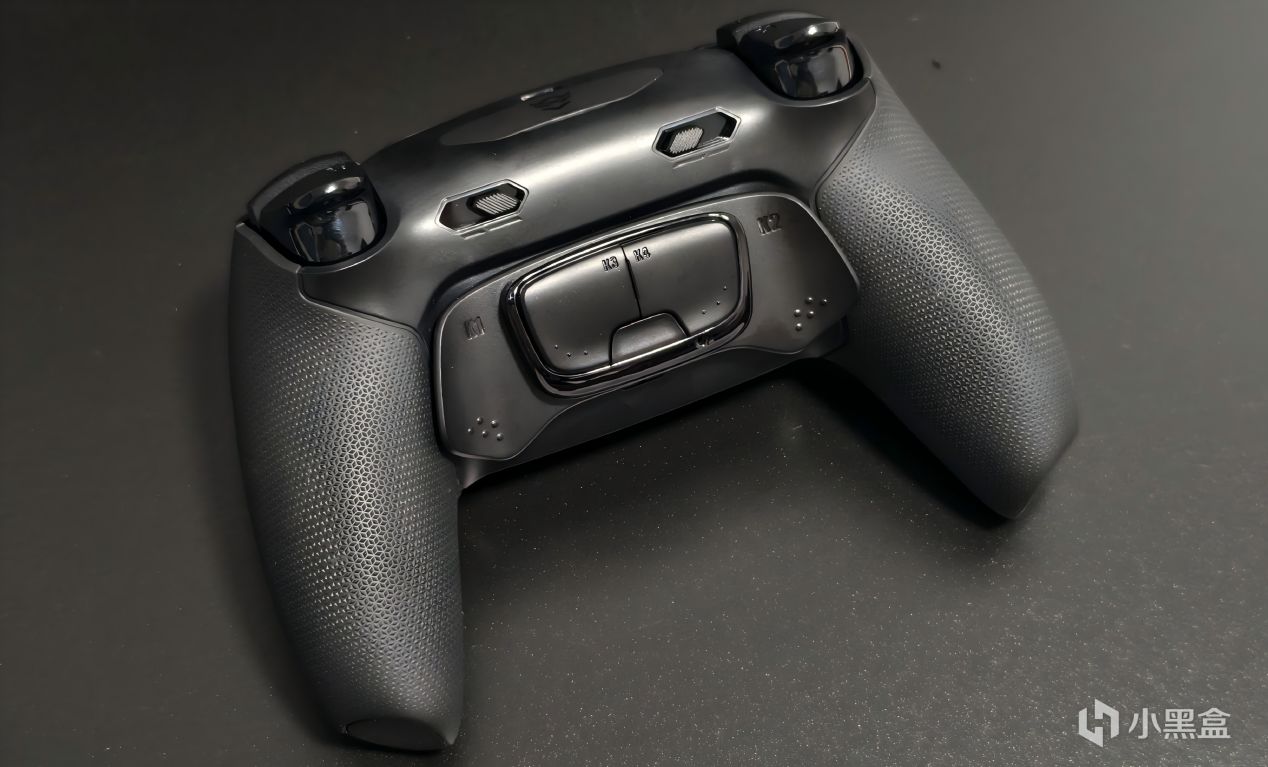 DS5手柄原生没有背键也是让很多玩家感到遗憾的一件事情,有时候按键不够用的确会影响游戏体验。黑克斯极刃手柄则在背面增加了四颗浆片式人体工学背键,支持最多同时存储六种映射方案。