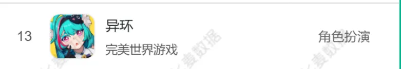《異環》首日暢銷榜位列13。一些其他同類產品開服情況:《明日方舟:終末地》首日暢銷榜爲第4,《鳴潮》公測首日暢銷榜第5。