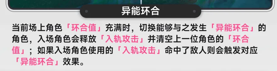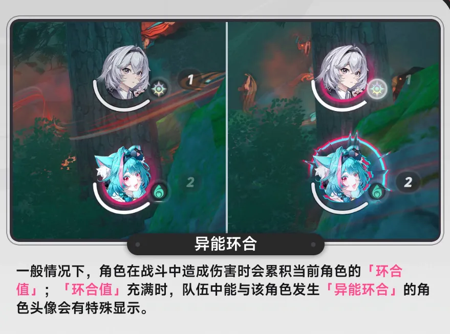 《異環》添加了一套環合系統,不同屬性的角色可以通過攻擊累計環合條,再通過切人的方式打出來,不同的環合還有不同的效果。