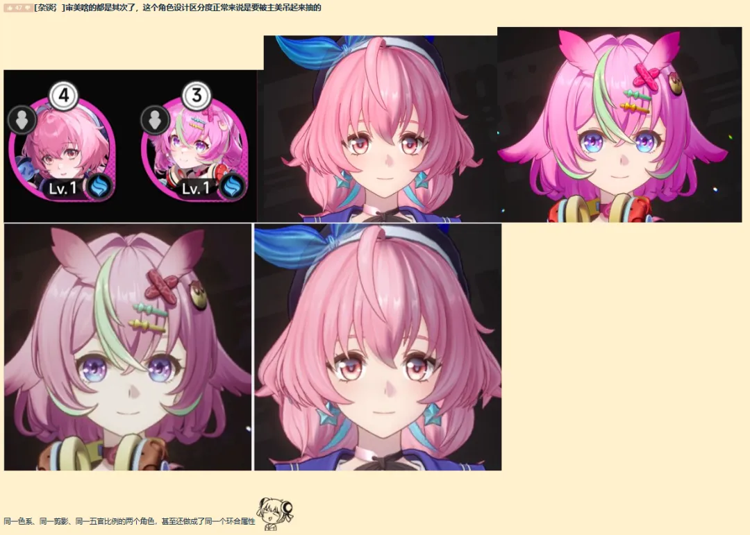 簡而言之,角色沒有視覺錨點,沒有能讓人一眼能記住這名角色的記憶點。同時,這種事情還發生在《異環》的首位UP角色娜娜莉身上。