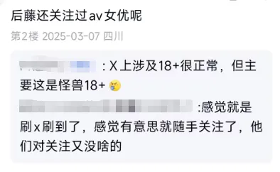 但也就是在这段时间,你说好巧不巧,刚好有好事者扒出了这位花甲老人的关注列表——不仅有小楠凉,还有怪兽涩图画师。