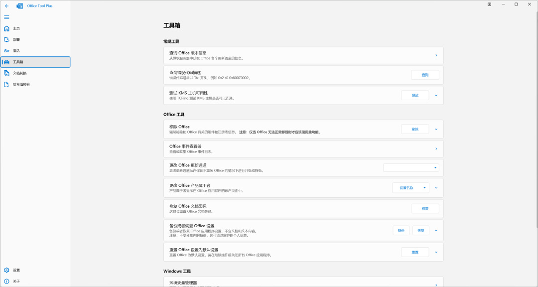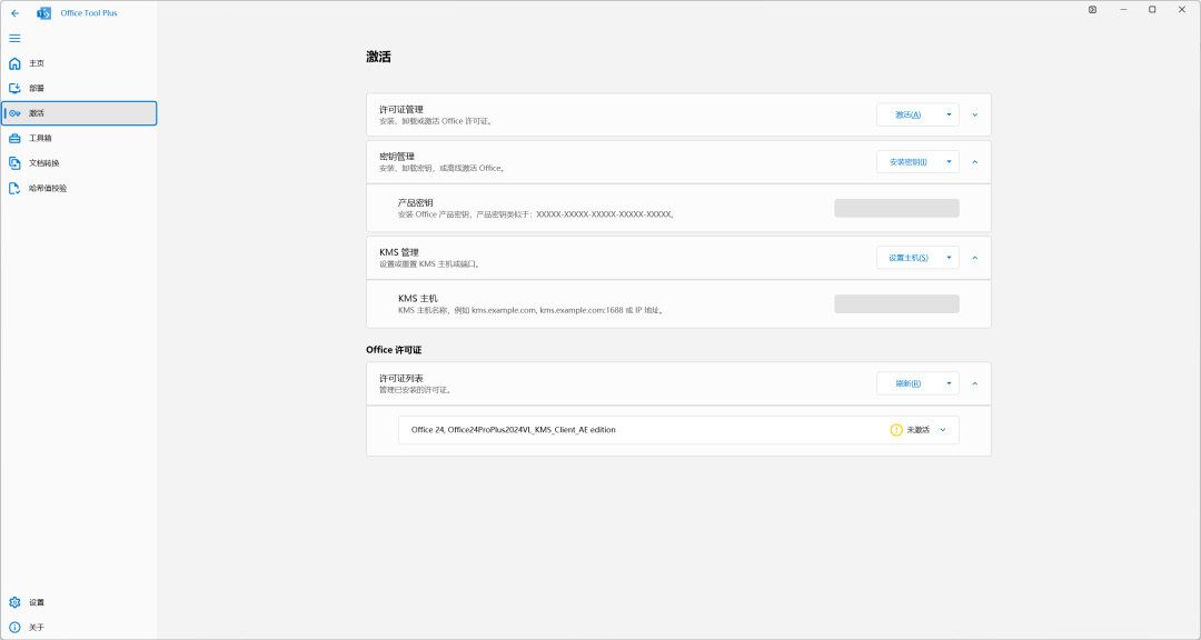 激活与授权管理也非常方便。支持在线激活、KMS激活等多种方式,适配各类授权类型,可轻松激活全版本Office及相关产品。同时提供许可证、密钥及KMS服务器管理,能快速修复激活异常,基本是零基础上手。