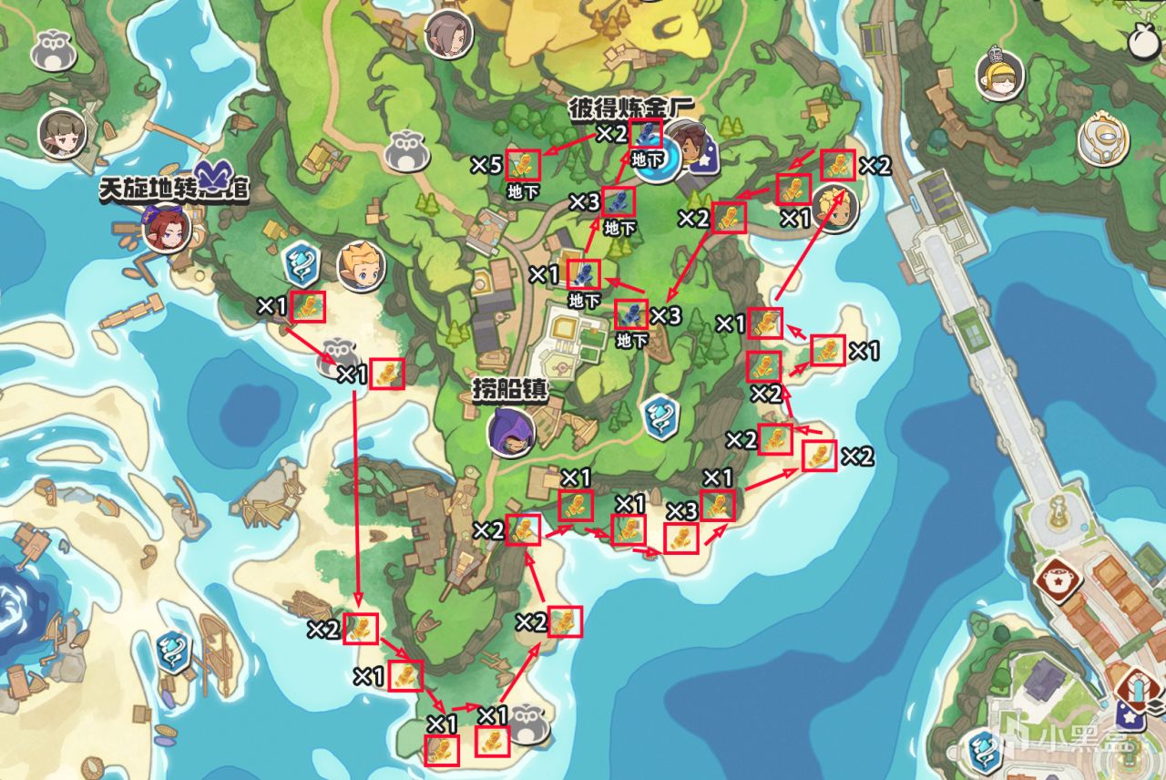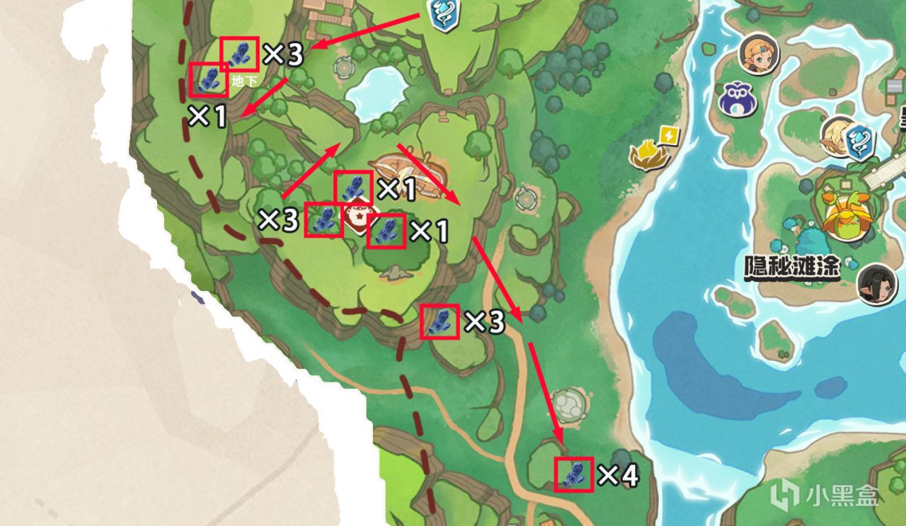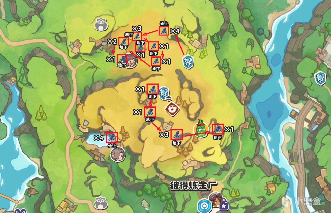 今天整理了全地图矿石资源的点位分布,并且添加了跑图路线,希望能对盒友们有所帮助