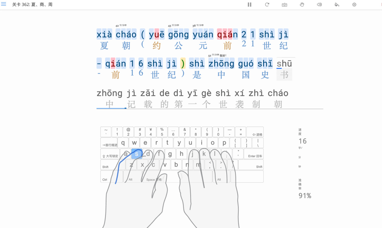 它有清晰的目录,想练中文打字,就从拼音练习开始。