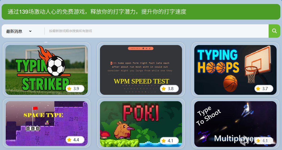 这个网站的绝大部分游戏都是免费的,里面还会有基础的指法教学,也是以游戏形式呈现。