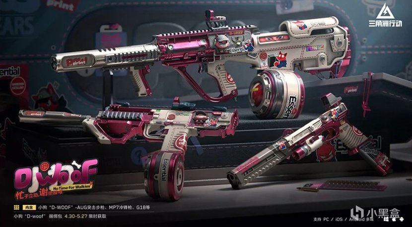 內容:小狗“D-WOOF"—AUG突擊步槍、MP7衝鋒槍、G18,系列掛飾、噴漆、頭像、軍牌。