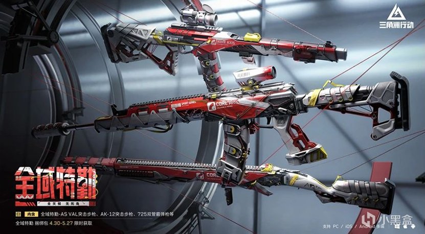 內容:全域特勤—AS Val突擊步槍、AK-12突擊步槍、725雙管霰彈槍,系列掛飾、噴漆、頭像、軍牌