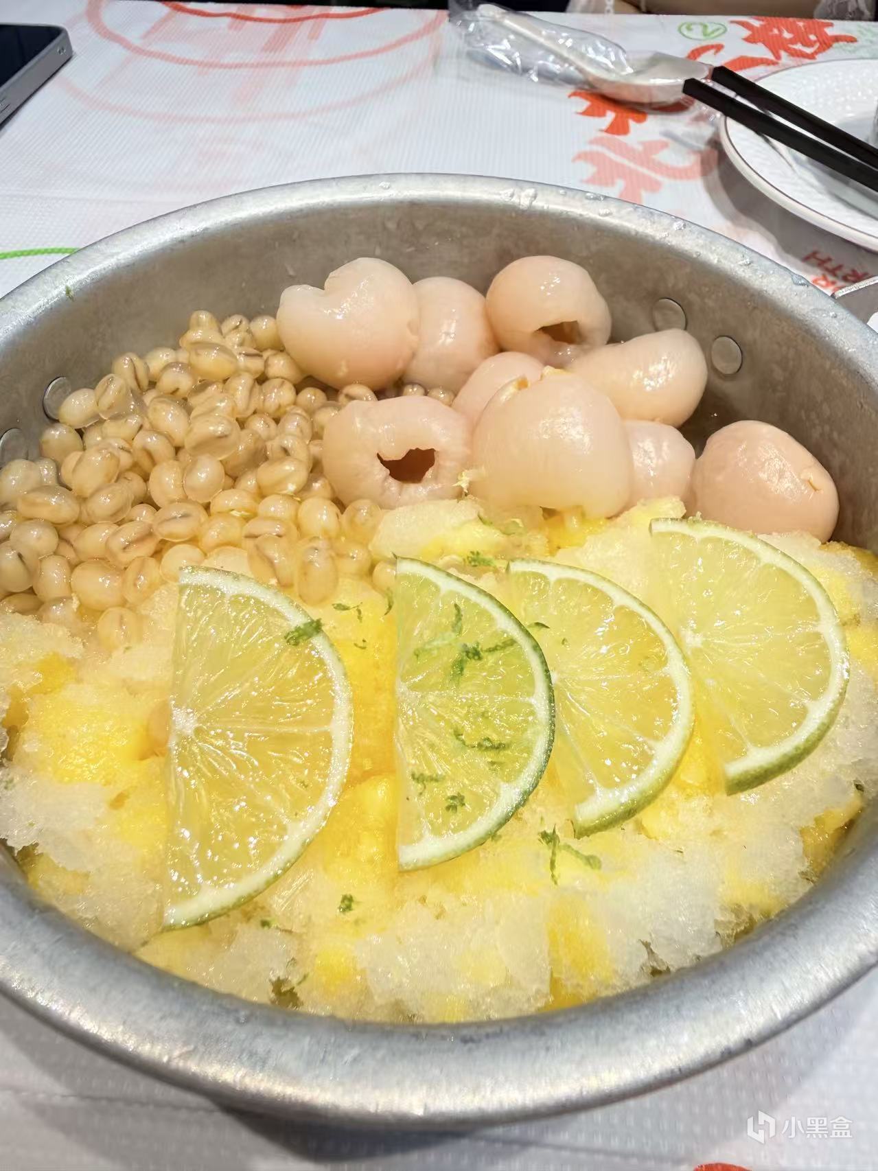 鳳梨荔枝渣渣冰:強推!我願意爲了這口再去一千次北二樓——!如題,就是鳳梨+荔枝+馬蹄爆珠+冰粉+冰沙和薄荷葉的完美搭配。清甜解辣又有檸檬的微微酸,配着其他重口味菜餚喫真是解膩一把好手!