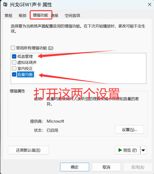 主包主包,我的耳機"屬性"裏面怎麼沒有"增強功能"?