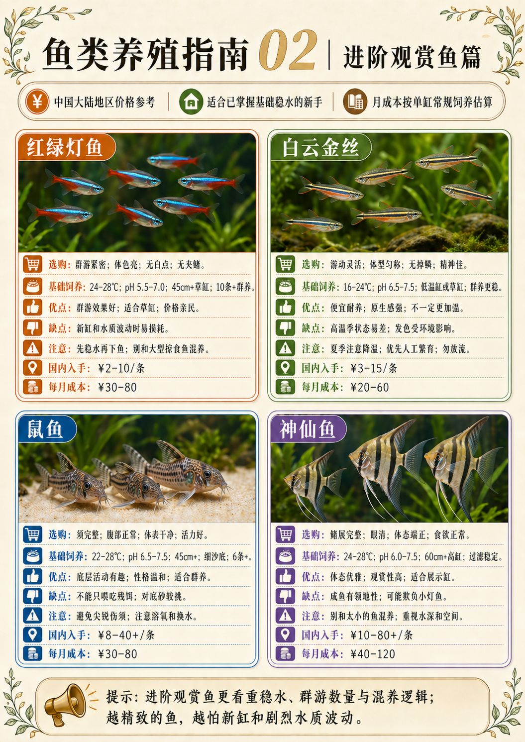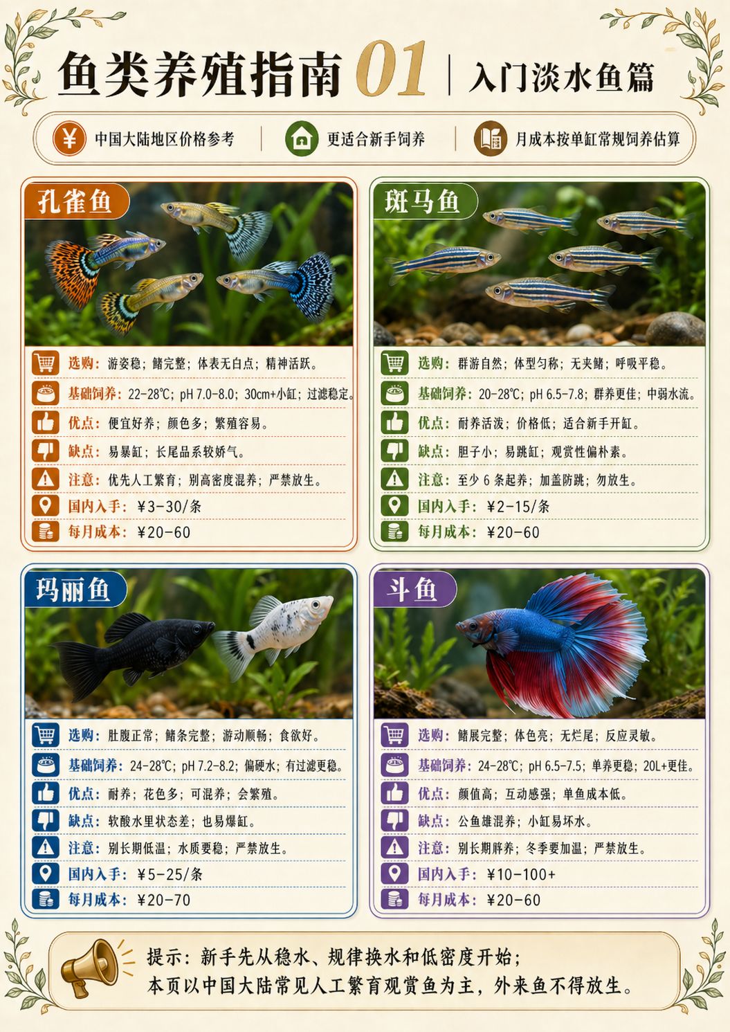 養魚最重要的是先養水再下魚,確保過濾和硝化系統穩定;