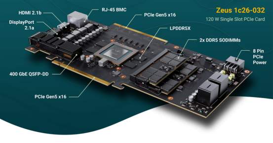 单芯版Zeus 1c26为单槽全长PCIe显卡,双精度算力5 TFLOPs,单精度10 TFLOPs,半精度20 TFLOPs。