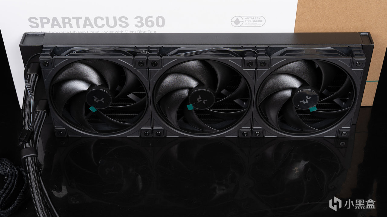 冰暴360 PRO配备了三枚120mm高性能叶尖静音环风扇,在扇叶末端之处采用整流环设计,PC材质打造能保持结构刚性,确保气流稳定,低噪表现也出色。风扇之间采用了隐藏式线材接口,外观设计更为美观,风扇转速能达到2500RPM±10%,最大可提供3.30mmAq风压和79.89CFM风量。