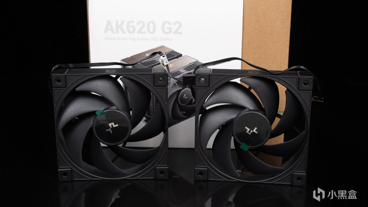 九州风神AK620 G2暗夜配备两把120mm风扇,搭载高品质HY轴承和三相四极六槽电机,确保运行更稳噪声更低,还支持0转速启停和ACT(开机8秒内激活清灰)两大独家技术,风扇转速标称达到2000±10%,最大可提供2.78mmAq风压和57.76CFM风量。