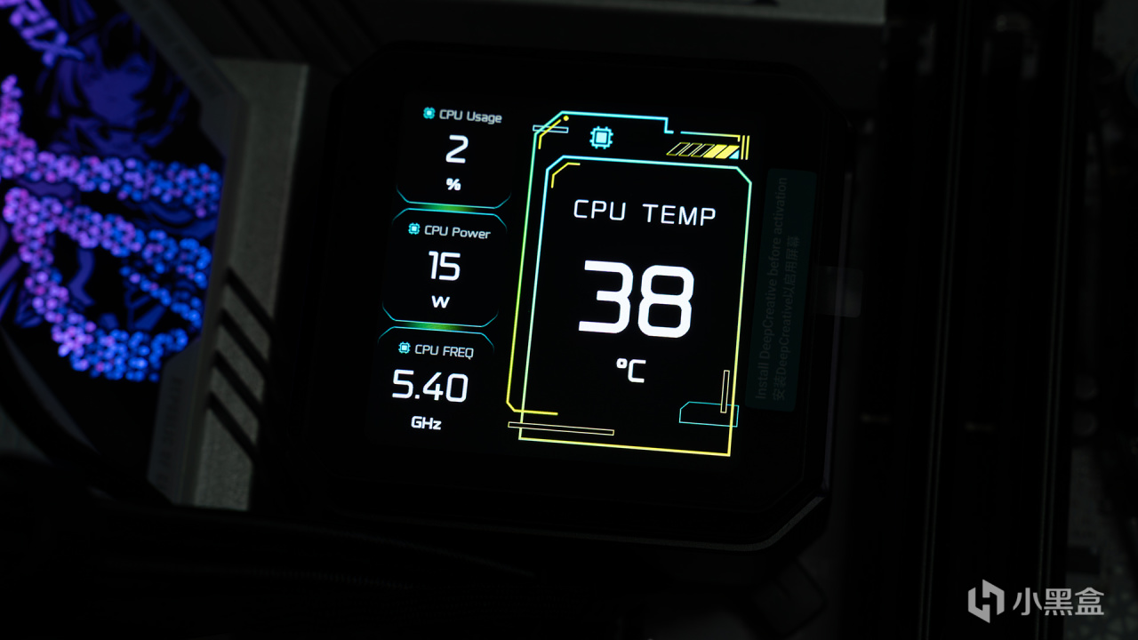 在金属外壳冷头上,搭载了一个3.4英寸IPS显示屏,其亮度能支持到750 nits,拥有480X480分辨率、30Hz刷新率和1670万色彩,显示效果很出色,搭配DeepCreative软件屏幕可玩性拉满,具体我们下面上机再细谈。